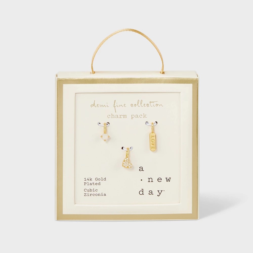 Create a unique look by accessorizing with the 3-Piece Cubic Zirconia 14k Gold Plated Pave Necklace Set from A New Day™. Including assorted-design pendants, this three-piece gold-plated pendant set includes simple and studded pendants for everyday options. Plus, this pendant set is nickel free to suit all skin types. A New Day™: Style that goes wherever you do.