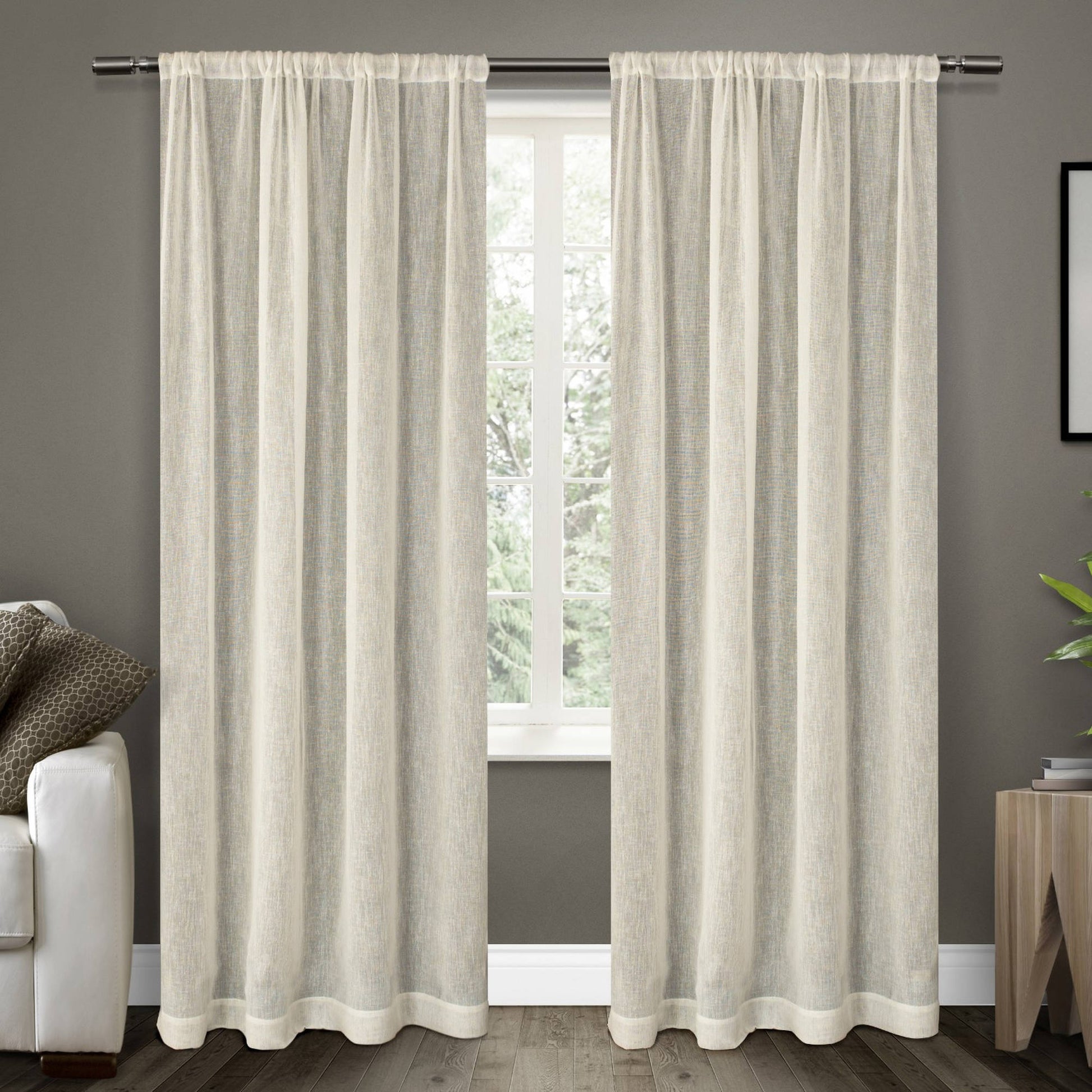 Set of 2 96"x50" Belgian Textured Linen Rod Pocket Sheer Window Curtain Panels Ivory - Exclusive Home: Polyester, OEKO-TEX Certified
